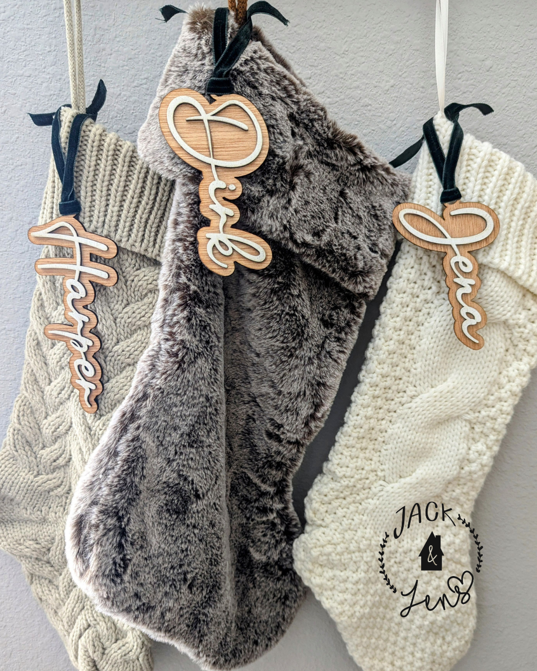 Make your gifts extra special with the Cursive Offset Name Gift Tag. This charming tag features your name in 3D and comes with soft velvet ribbons for hanging. Use it as a festive ornament, a stocking tag, or a cute place setting for the holidays!